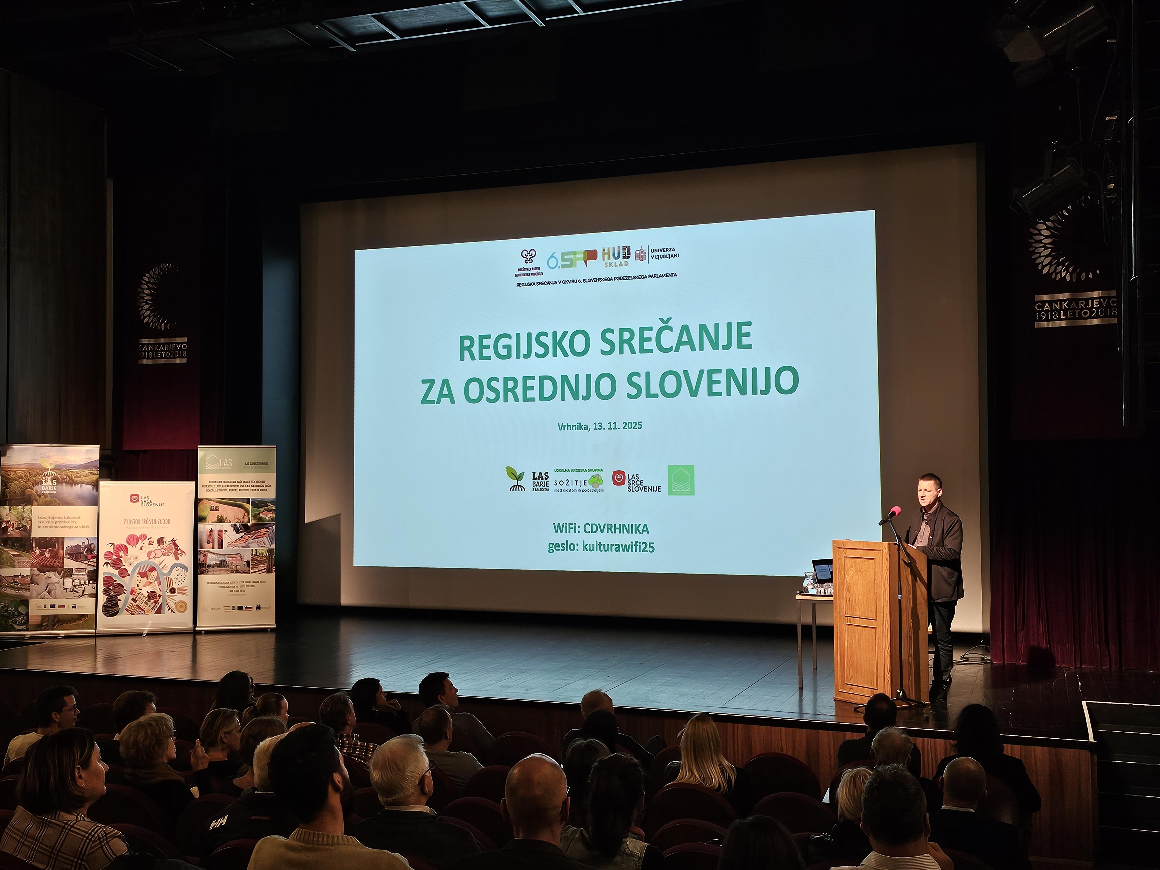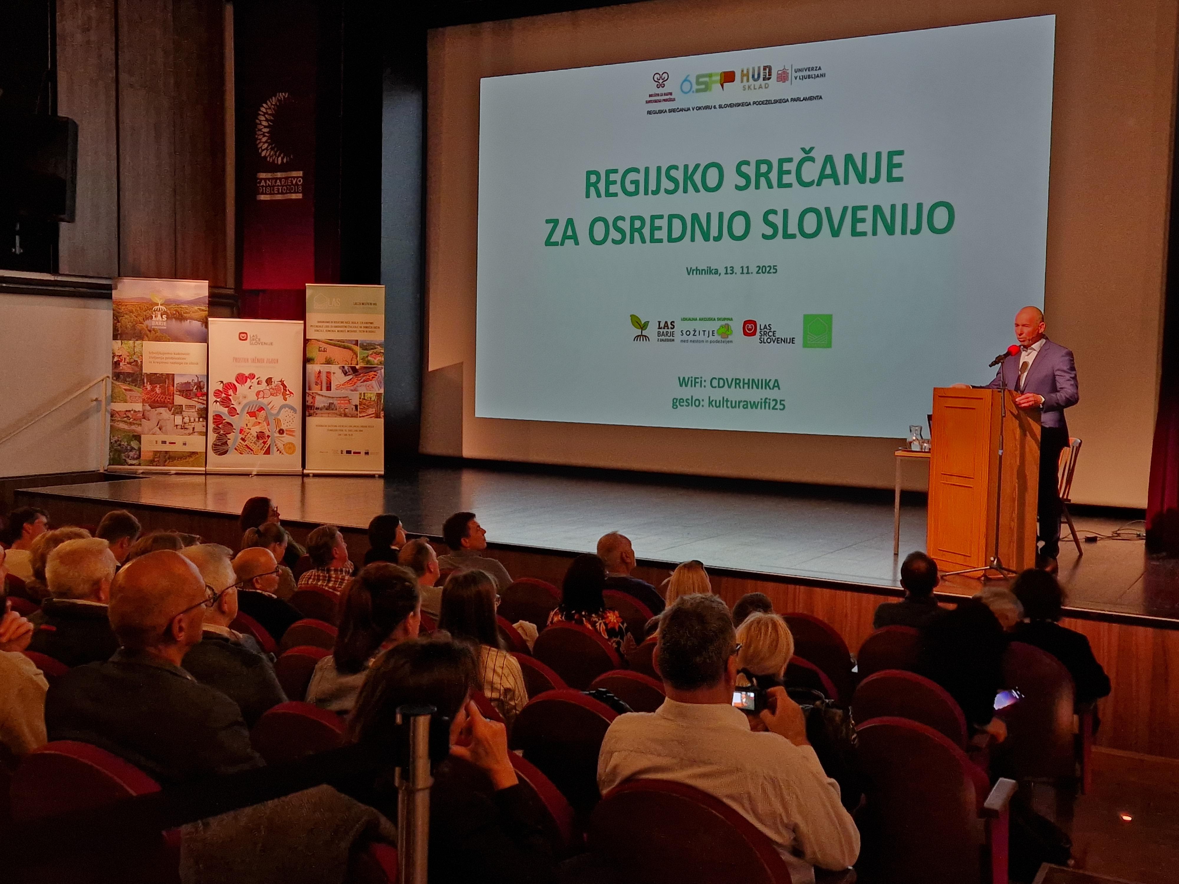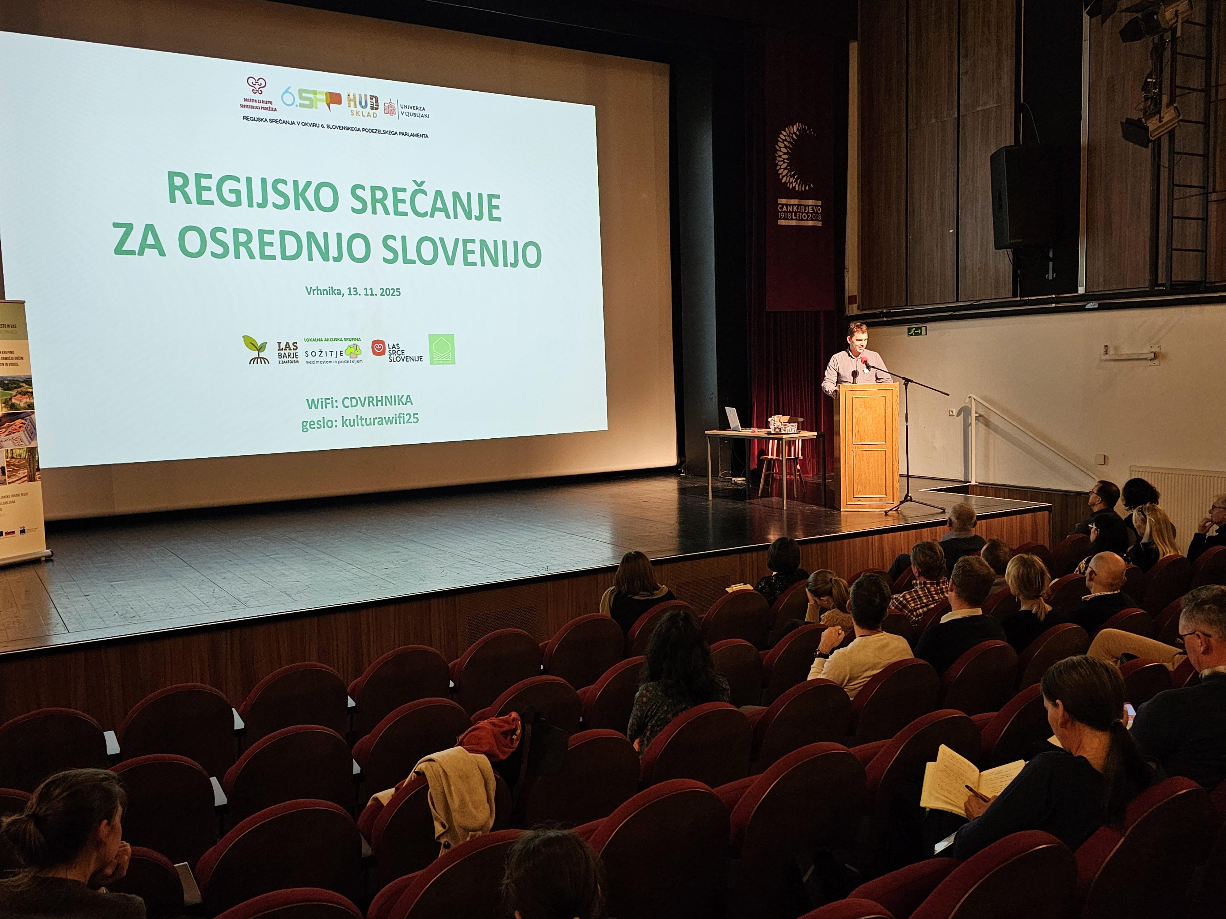 V Cankarjevem domu na Vrhniki je 13. 11. 2025 potekalo Osrednjeslovensko regijsko srečanje v okviru priprav na 6. Slovenski podeželski parlament - osrednji nacionalni dogodek, ki bo potekal junija 2026. Srečanje smo organizirale štiri osrednjeslovenske Lokalne akcijske skupine: LAS Sožitje med mestom in podeželjem, LAS Barje z zaledjem, LAS Srce Slovenije in LAS Za mesto in vas v sodelovanju z Društvom za razvoj slovenskega podeželja (DRSP) in strokovnjaki z Univerze v Ljubljani. Tokratni dogodek je bil namenjen razpravi o dveh pomembnih temah na podeželju – konfliktih na podeželju in stanovanjski problematiki na podeželju.