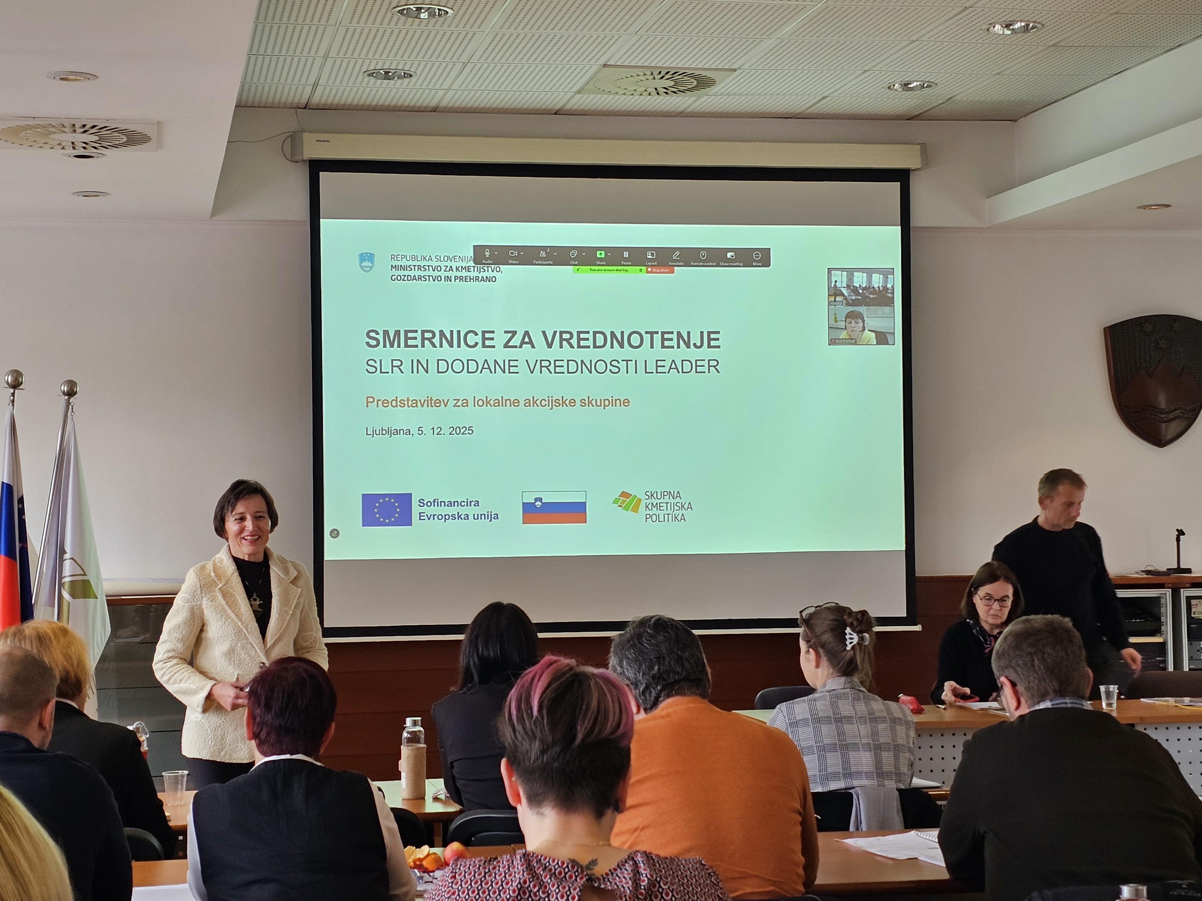 V petek, 5. decembra 2025, smo se udeležili jesenskega posveta Društva za razvoj slovenskega podeželja (DRSP) in delavnice ter predstavitve smernic za vrednotenje strategij lokalnega razvoja in dodane vrednosti LEADER s strani Ministrstva za kmetijstvo, gozdarstvo in prehrano (MKGP) v dvorani Kmetijskega inštituta v Ljubljani.