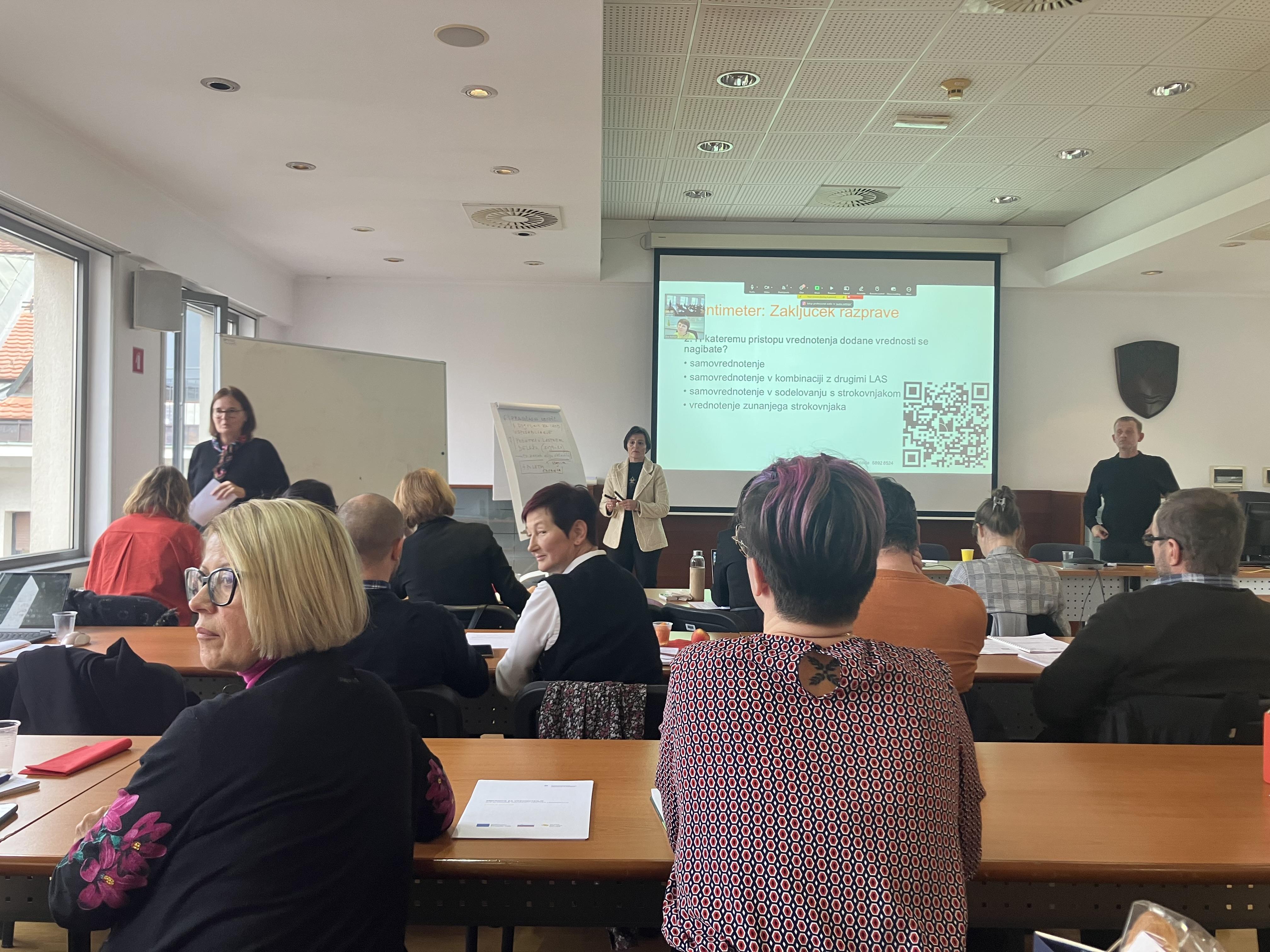 V drugem sklopu dogodka smo nadeljevali z delavnico z naslovom Predstavitev smernic za vrednotenje SLR in dodane vrednosti LEADER, kjer je Marjeta Jerič (MKGP) predstavila pomen vrednotenja dodane vrednosti pristopa LEADER na nacionalni in EU ravni, ki ga mora obvezno opraviti vsak LAS. Julija Marošek (Nov’na razvoj d.o.o.), prof. dr. Irma Potočnik Slavič (Filozofska fakulteta UL) in Matej Berač (Kmetijski inštitut Slovenije) so podrobneje predstavili dokument Smernice za vrednotenje SLR in dodane vrednosti LEADER, ki predstavlja pripomoček za vrednotenje in možnost za čimbolj poenoten pristop.