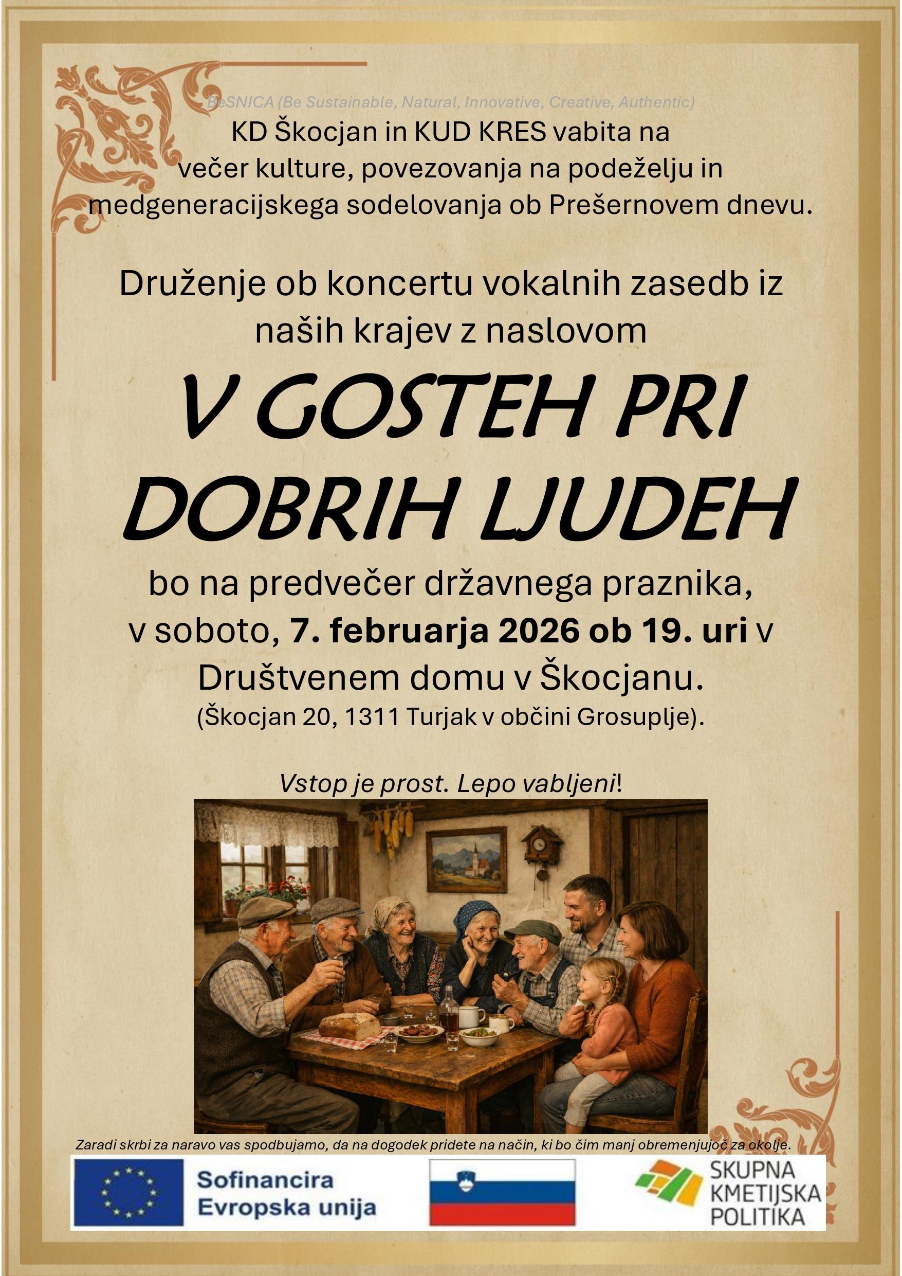 Vabilo na Druženje ob koncertu vokalnih zasedb iz naših krajev z naslovom V GOSTEH PRI DOBRIH LJUDEH.