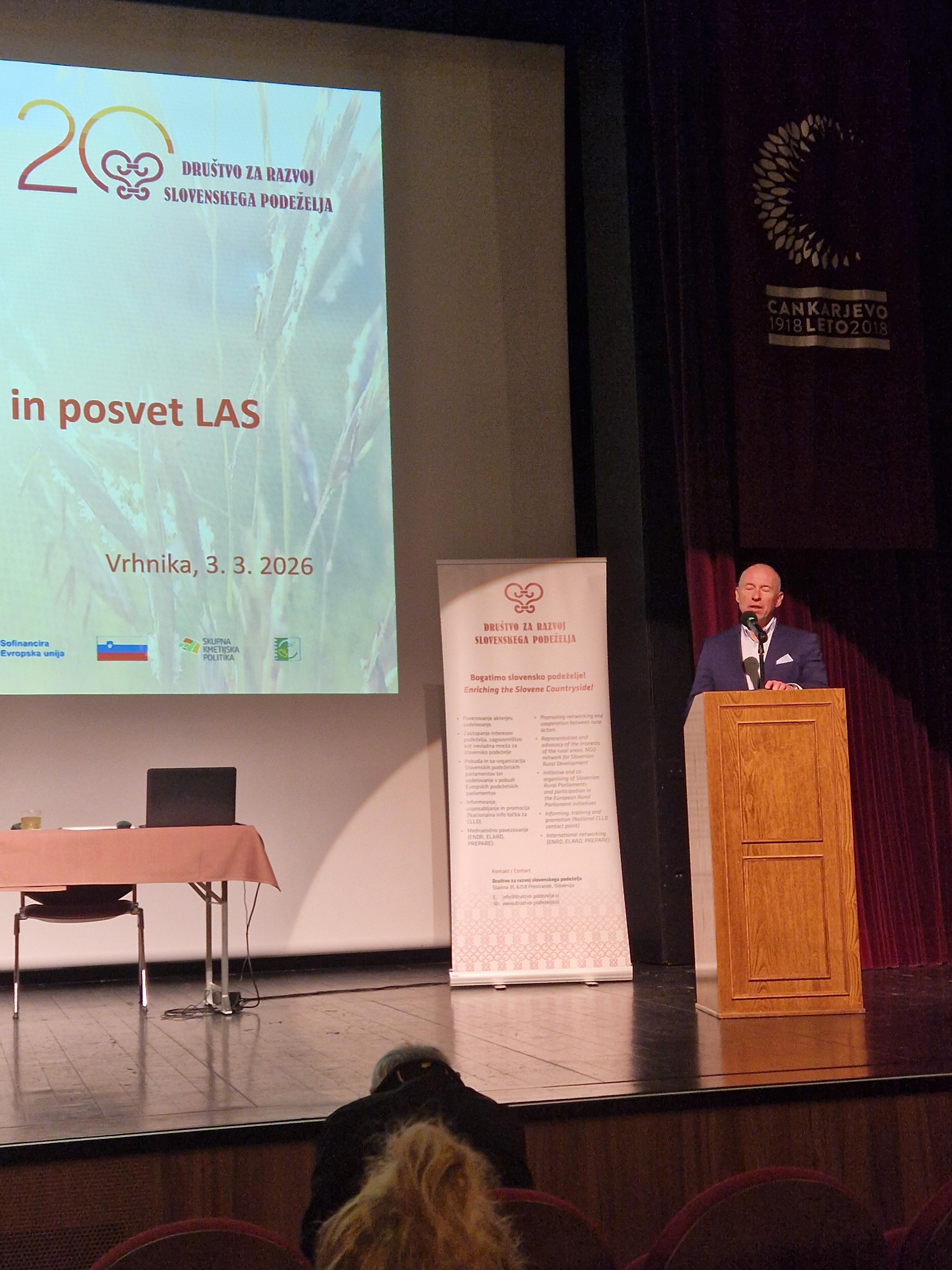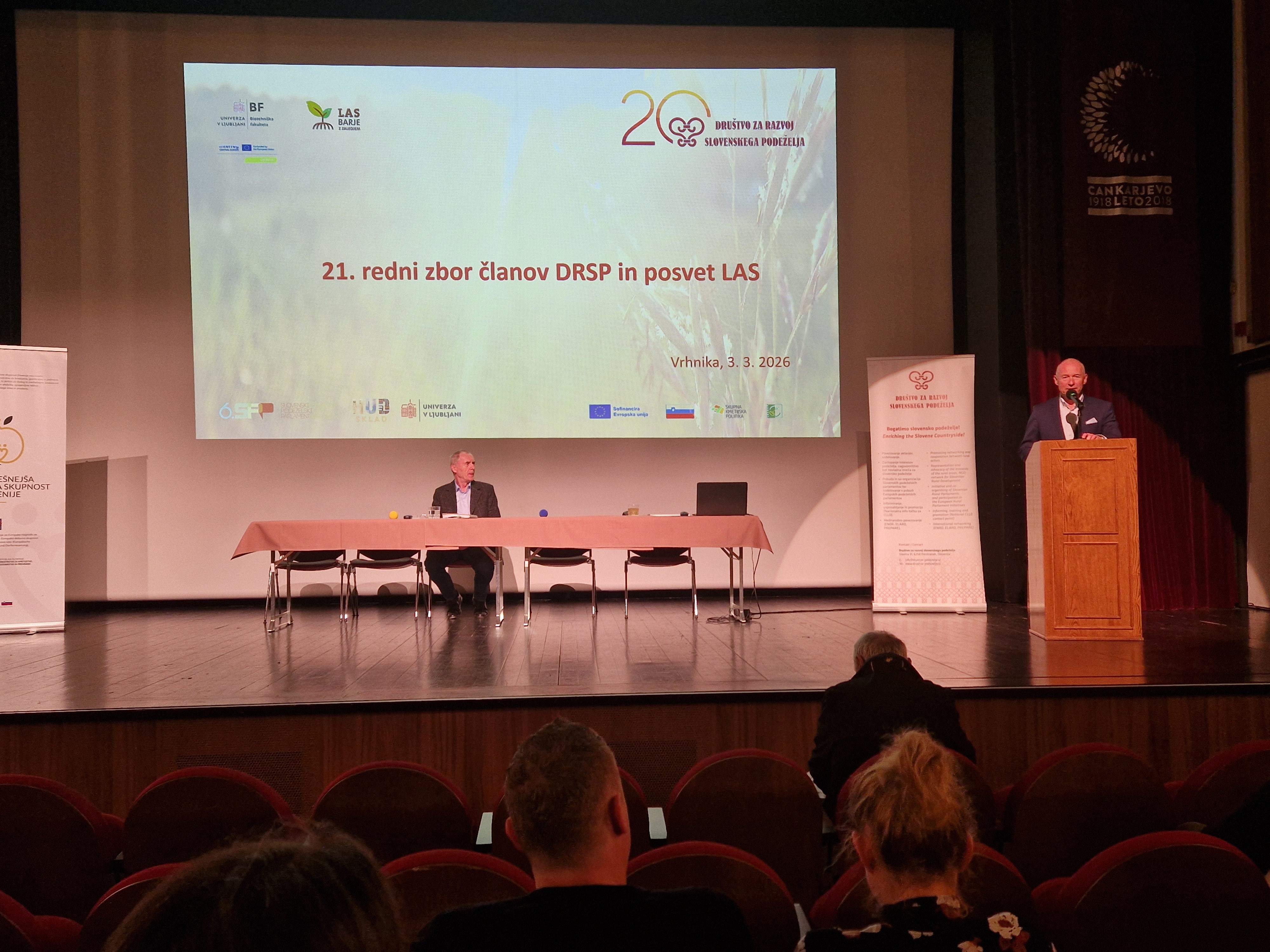 V začetku marca je na Vrhniki v Cankarjevem domu potekal 21. redni zbor članov Društva za razvoj slovenskega podeželja (DRSP) in posvet LAS z naslovom »Trajnostno upravljanje razvoja podeželja«. Tokrat nas je prijazno gostil LAS Barje z zaledjem, ki deluje na območju občin Brezovice, Borovnice, Dobrove - Polhov Gradec, Horjula, Vrhnike in Log-Dragomerja. Uvodoma nas je s prijetnimi in vzpodbudnimi besedami nagovoril predsednik gostujoče LAS Miran Stanovnik.